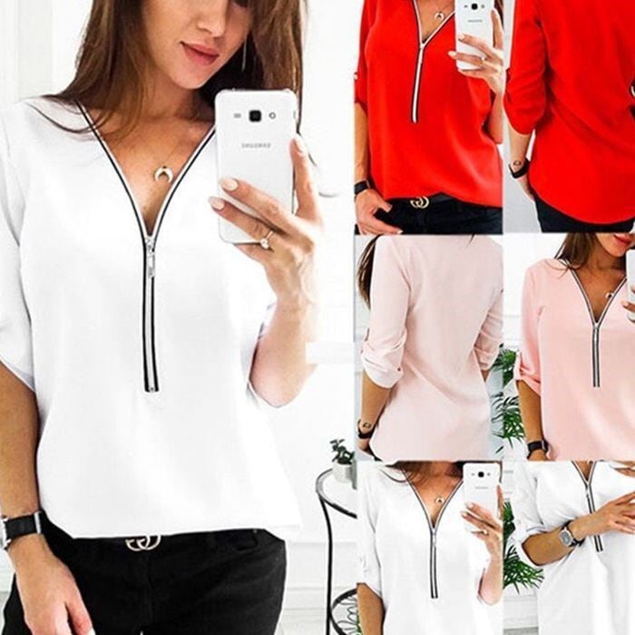 Vネック ブラウス カジュアル 半袖 Tシャツ トップス A821