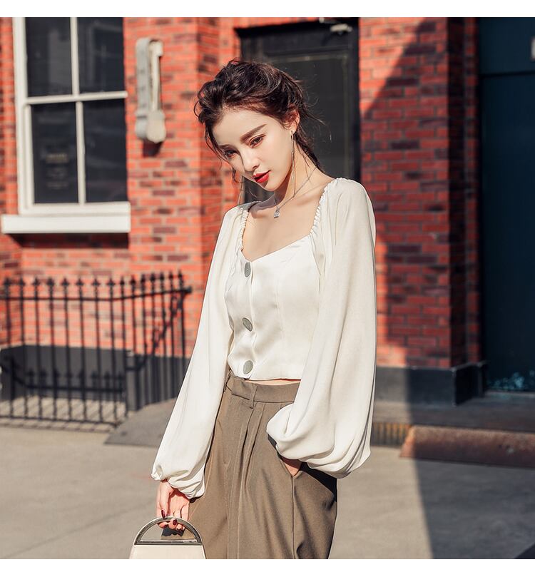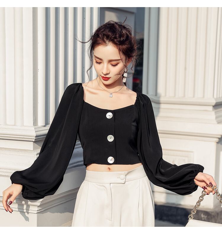 バブルスリーブ スクエアネック ブラウス 長袖 デザイントップス A709