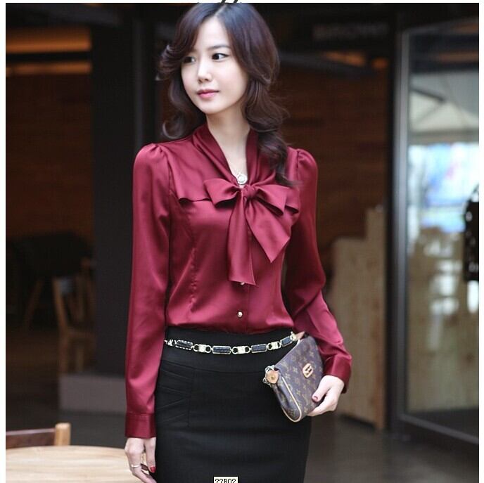 ブラウス リボンネクタイ 長袖 サテン ボウタイ シフォンシャツ ロングスリーブ A711