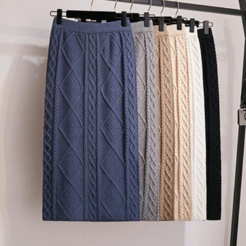 ニットスカート ツイスト ミドル丈 ストレートチューブ☆A1129