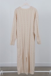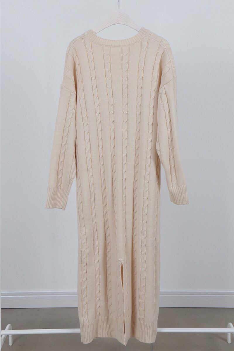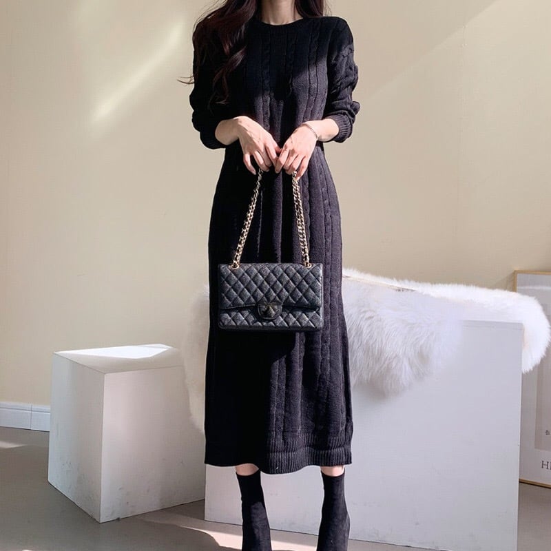 ラウンドネック 上ロングニットセーター ワンピース ドレス 2カラー a849