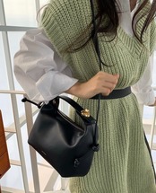 【セット】Vネック長袖シャツ+膝丈スリットニットベスト