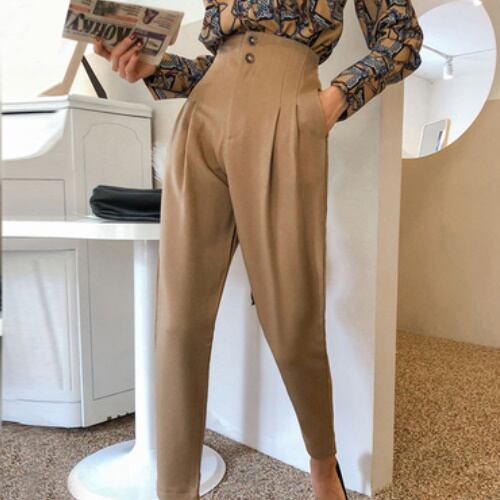 ハイウエスト 9分丈 パンツ ダブルボタン☆A1205