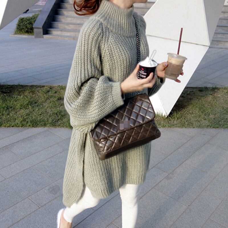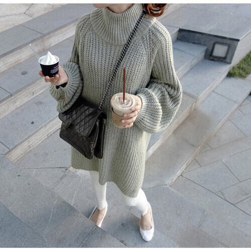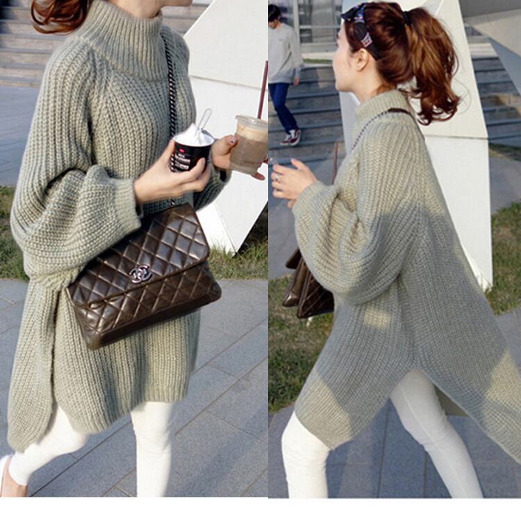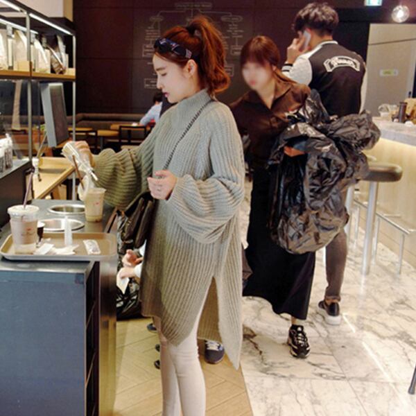 ルーズニット セーター 長袖 ミドル丈 スリット ワイドセーター 2カラー a859