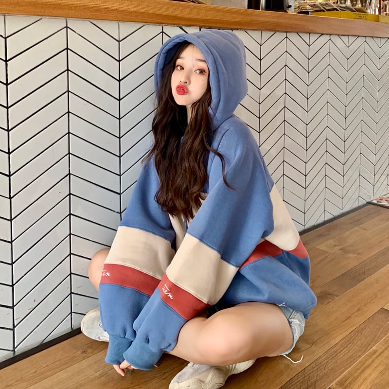 フード付き パーカー トリコロールカラー 長袖トップス 3カラー a868