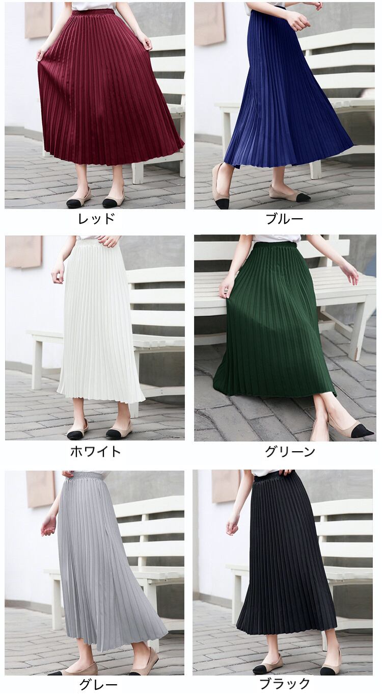プリーツスカート ロング丈 ウエストゴム シフォンスカート ハイウエスト☆A1218