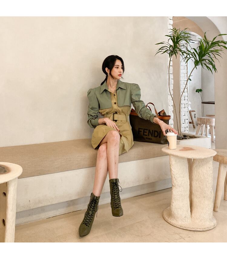 バイカラー トレンチコート風 ワンピース ウエストベルト付き a879