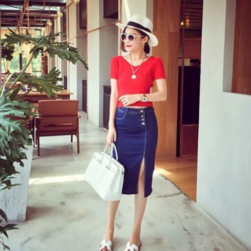 スリットの入ったセクシーなデニムスカートのご紹介です。