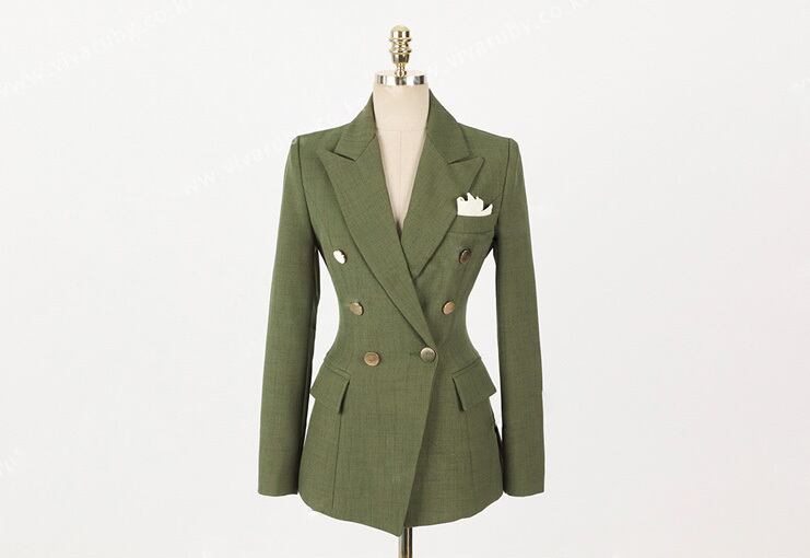 鮮やかなグリーンが綺麗なスーツセットアップです。