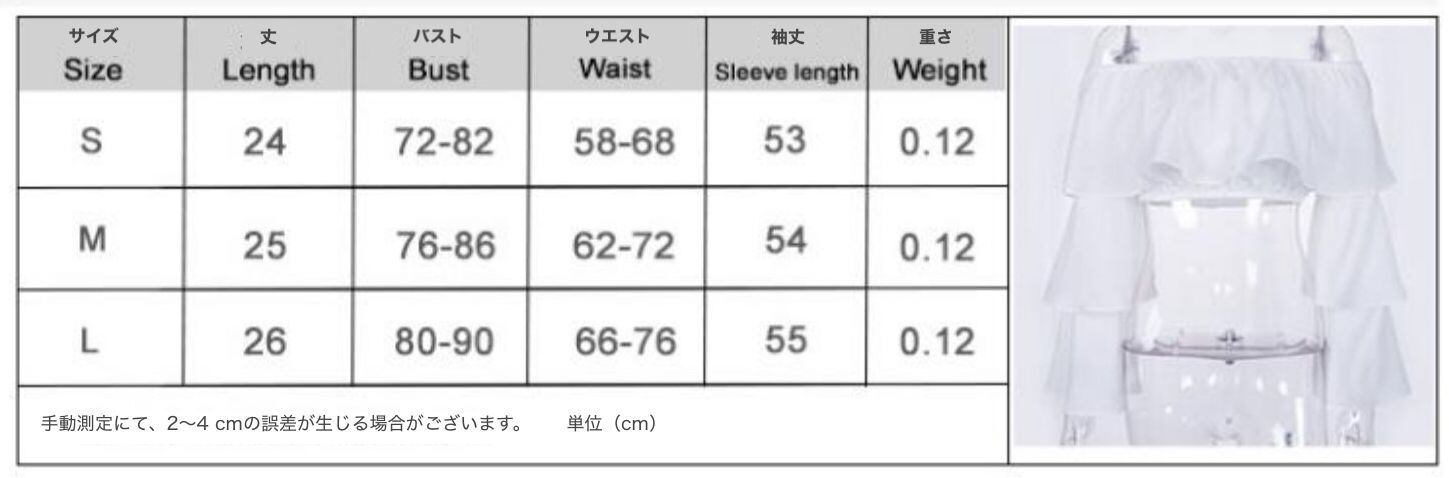 注:手動測定にて、2〜4 cmの誤差が生じる場合がございます。