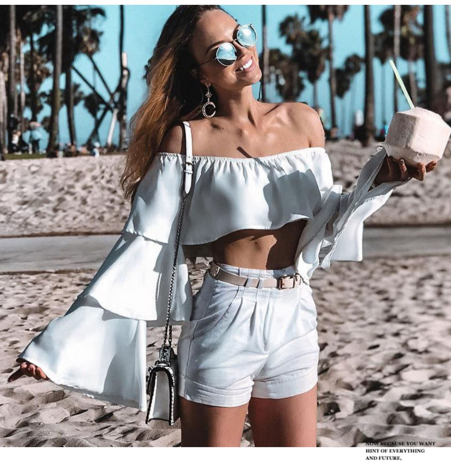 ホーンスリーブ オフショルダー ショート 長袖Tシャツ チューブトップ A749