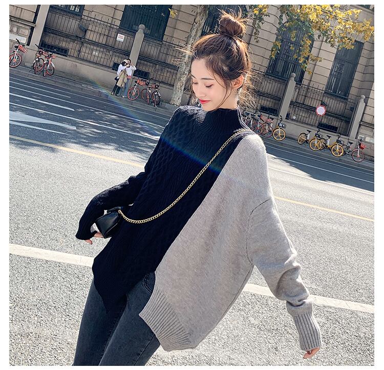 バイカラーセーター ニット トップス タートルネック 韓国 A932