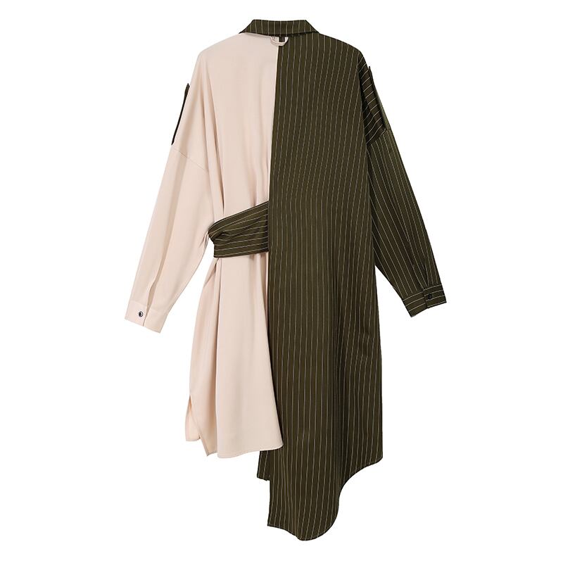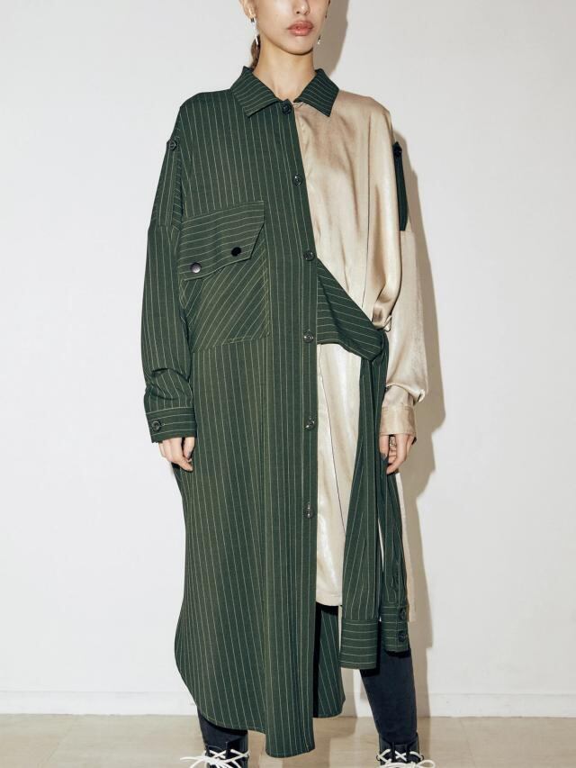 【日本未発売】切り替え長袖シャツワンピース アシメントリー バイカラー A949