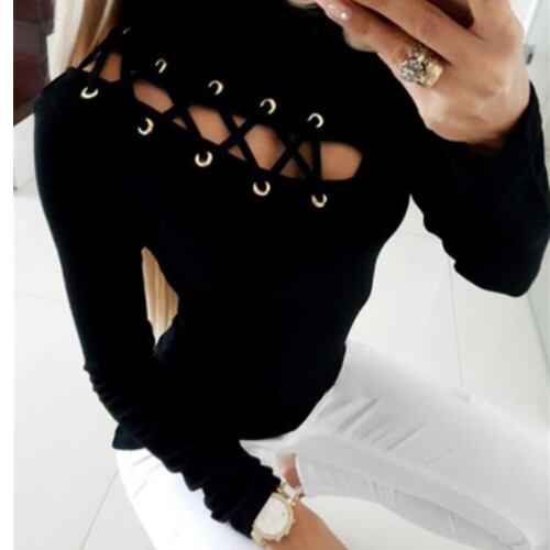 編み上げ 長袖トップス 肌見せ セクシー A1292