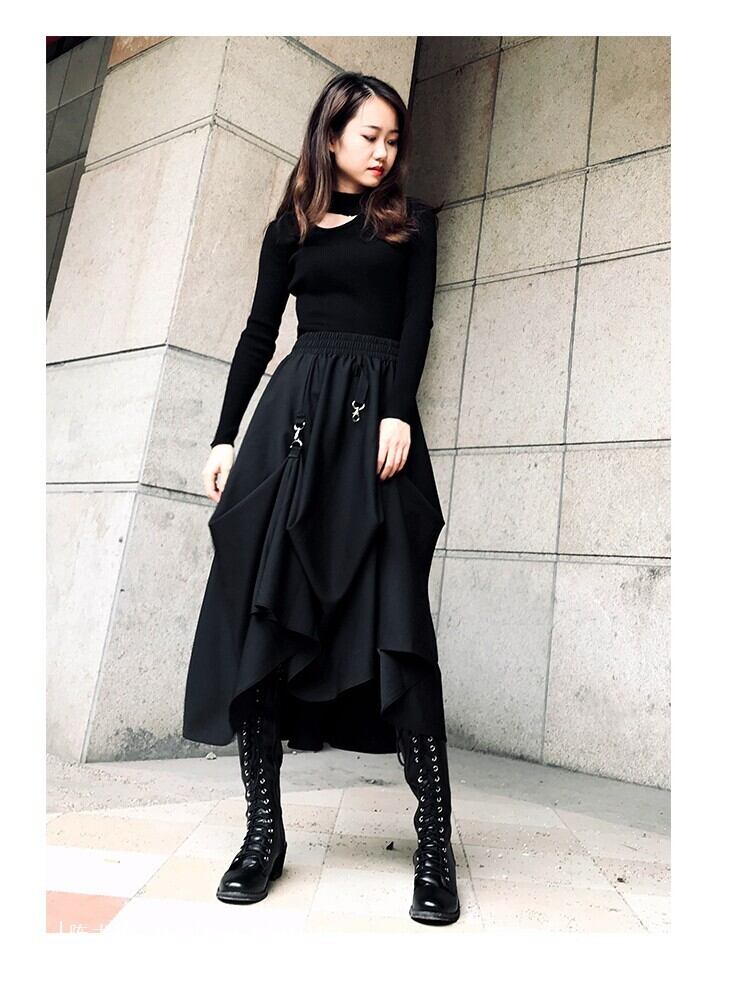 アシンメトリー ゴシック 個性的 ブラック ウエストゴム A965
