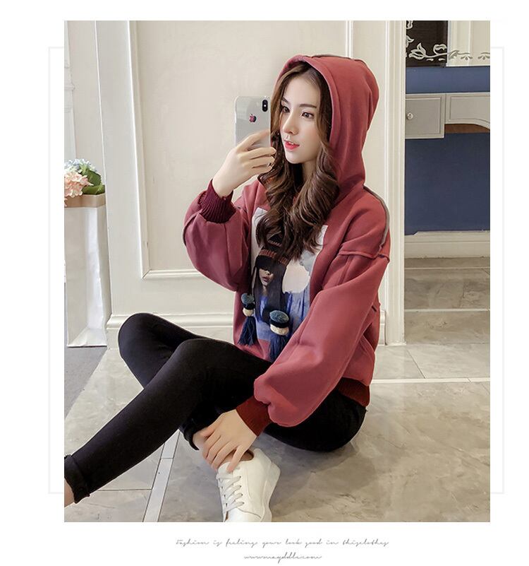 プリントファーボールフーディー ベルベット厚フードセーター フード付き A976