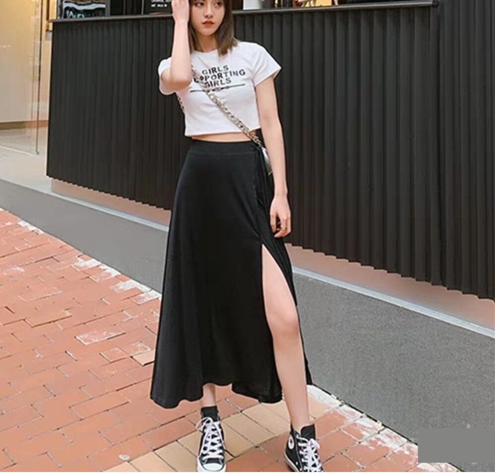 スリットスカート ウエストリボン ミモレ丈 2カラー a1316