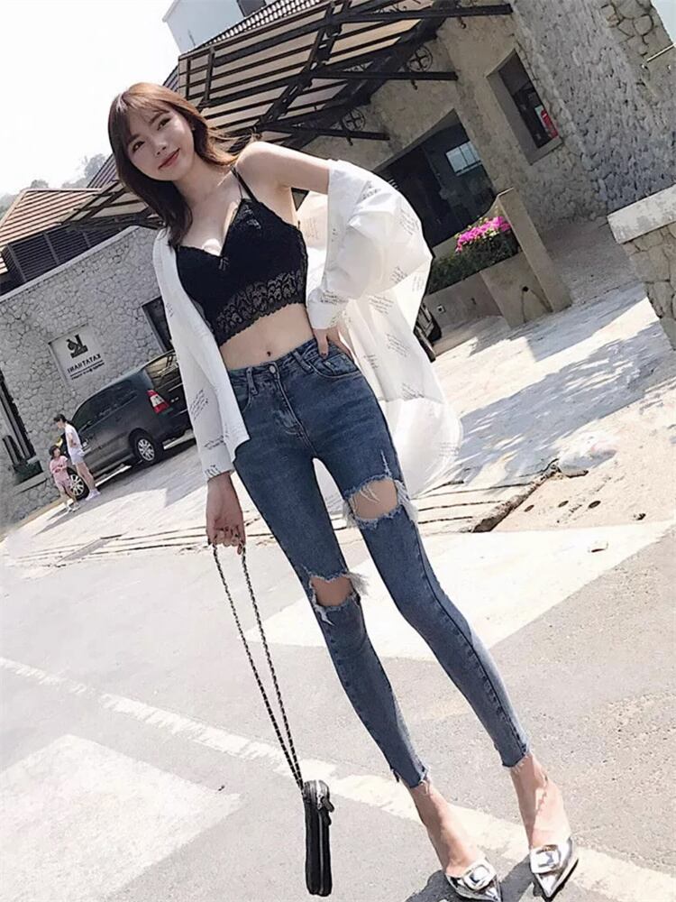 ダメージデニム ハイウエストジーンズ 9分丈 A978