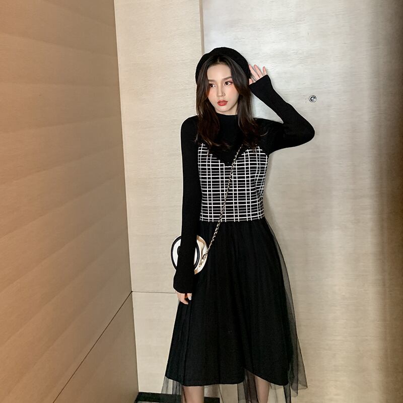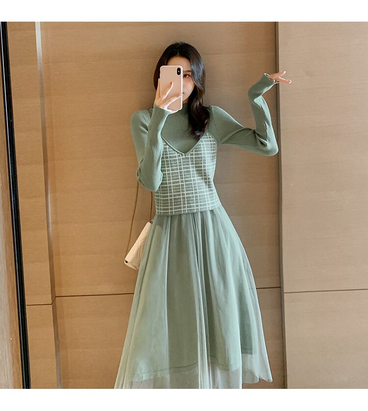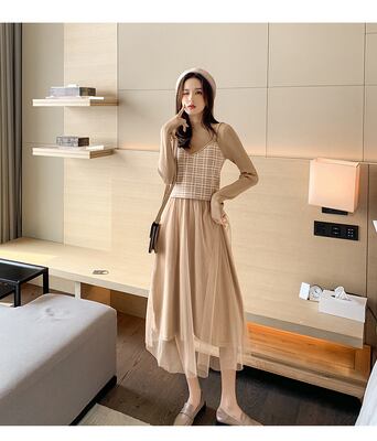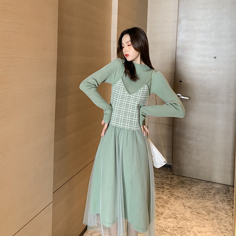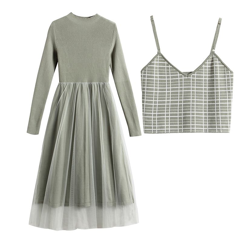 【セット】ニットワンピース+ビスチェ Aラインワンピース ハイウエスト 3カラー A986