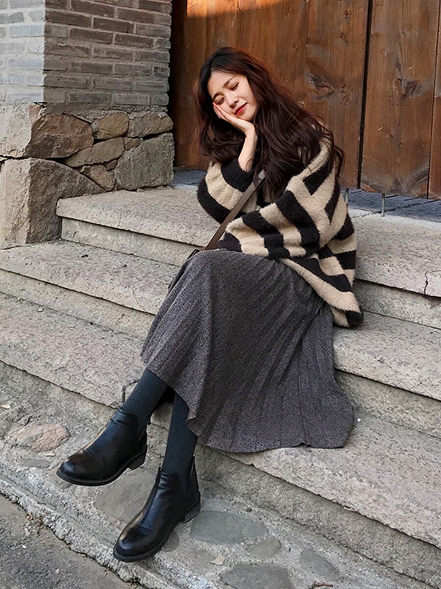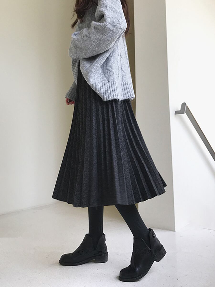 落ち着いた雰囲気のAラインプリーツウールスカート