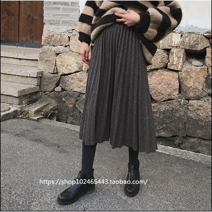 プリーツウールスカート ハイウエスト Aライン ミドル丈 ウールスカート 2カラー a1335