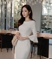 エレガント ホーンスリーブ ヒップレースボトムドレス A889
