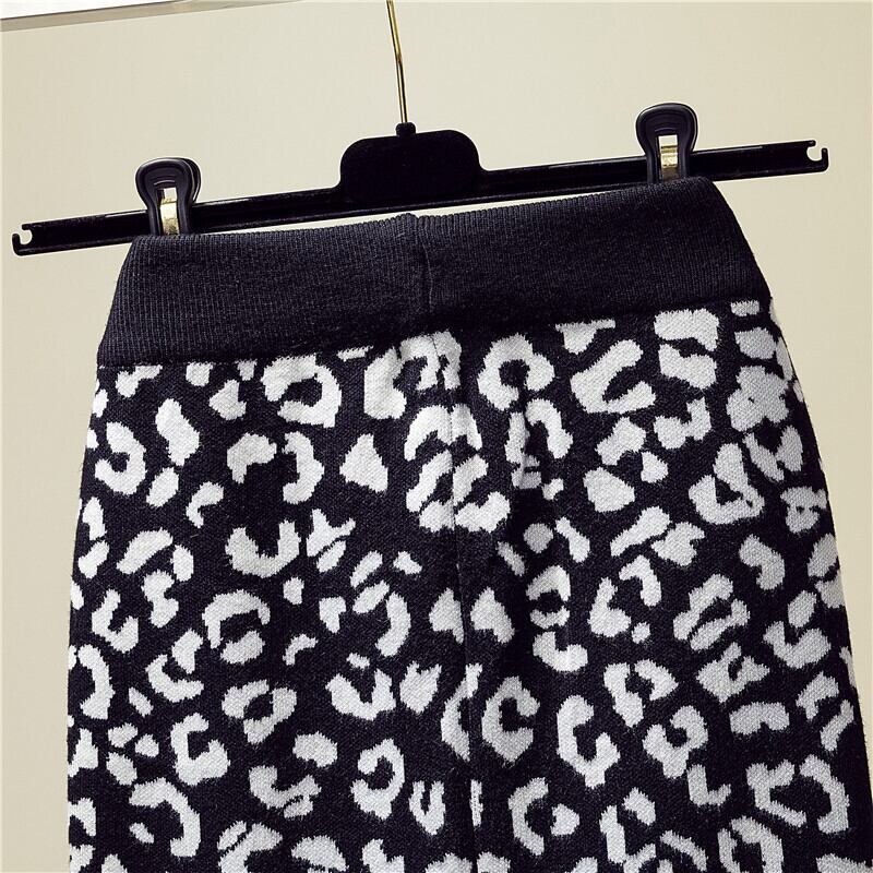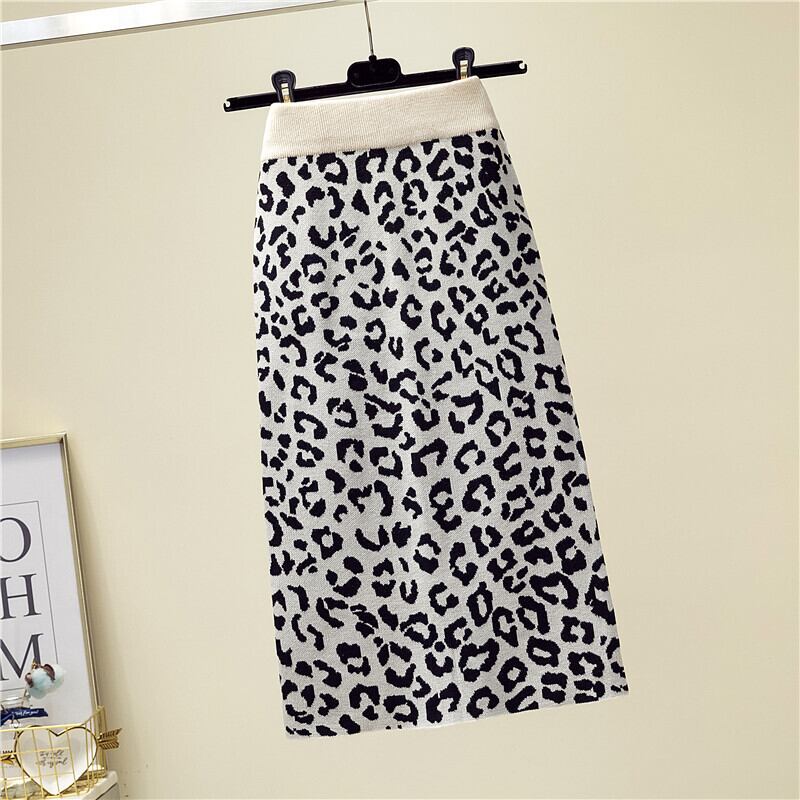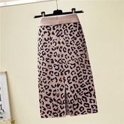 ヒョウ柄ニットスカート ハイウエスト ウールスカート ミドル丈 4カラー a1348