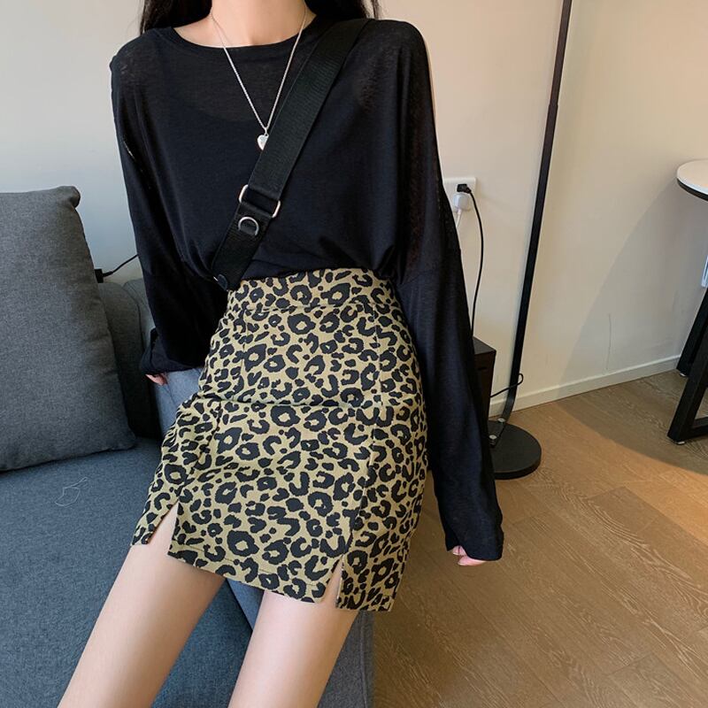 ヒョウ柄ハイウエストスカート Aラインスカート ショートスカート 2カラー a1350