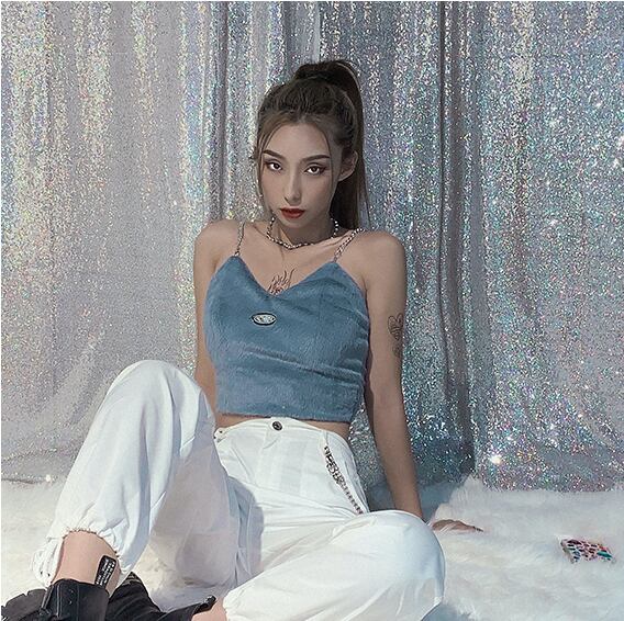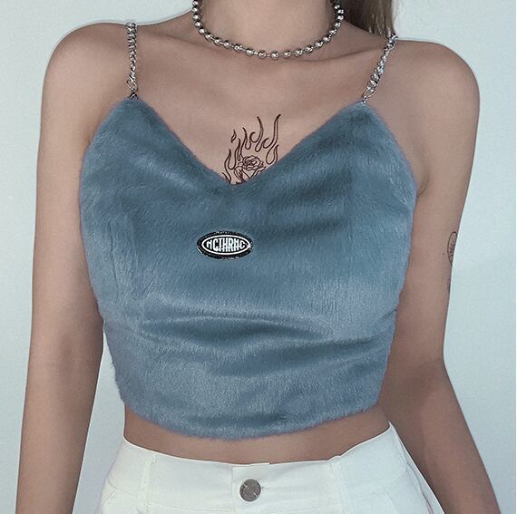 チェーンベストキャミソール フェイクファーニット バックジッパー a1363