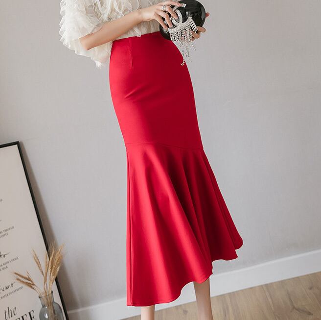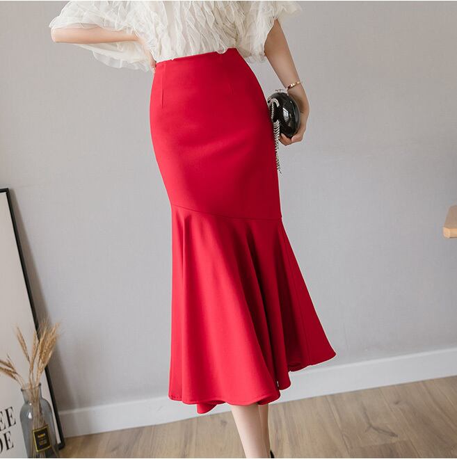 マーメイドスカート Aラインフィッシュテールスカート ハイウエスト 2カラー a1371