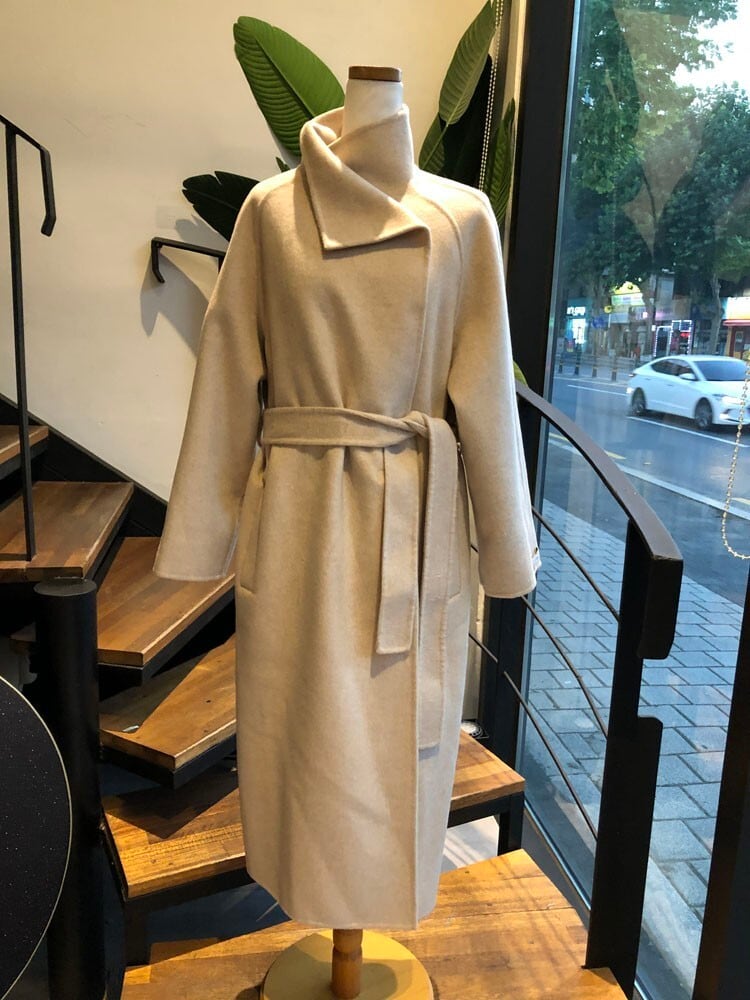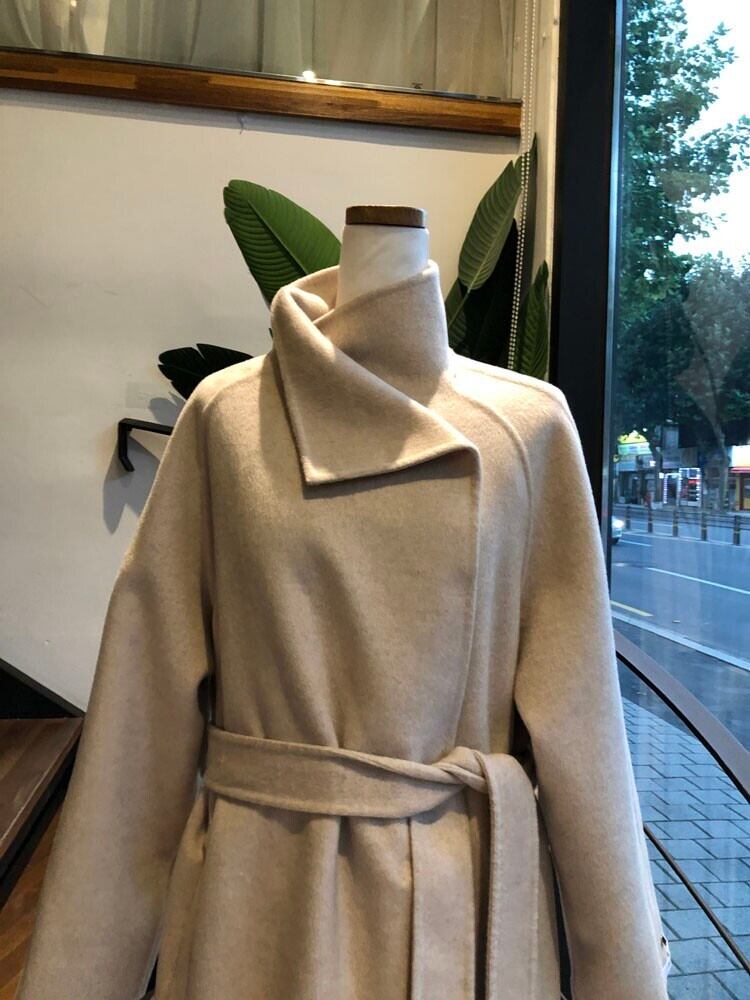 ウールコート フレンチスタイル スタンドアップカラー ウエストリボン 2カラー a1393