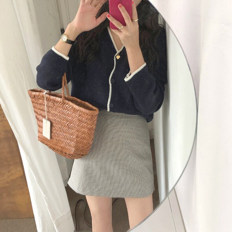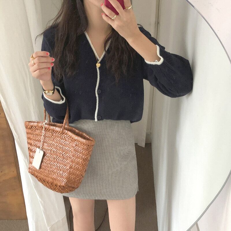 YラインカラーがアクセントのVネックカーディガン