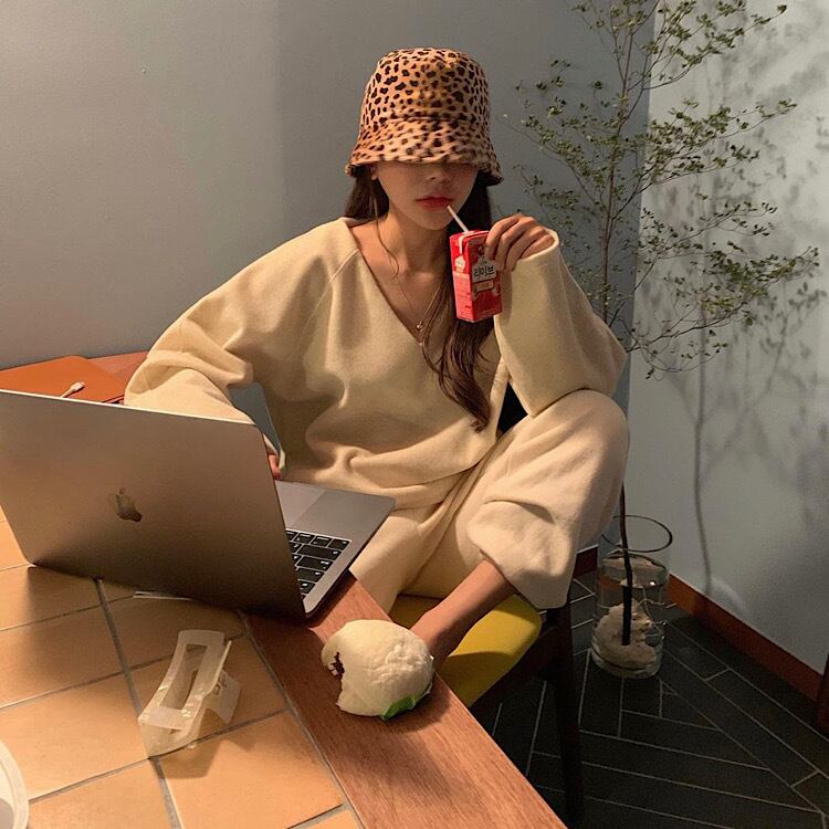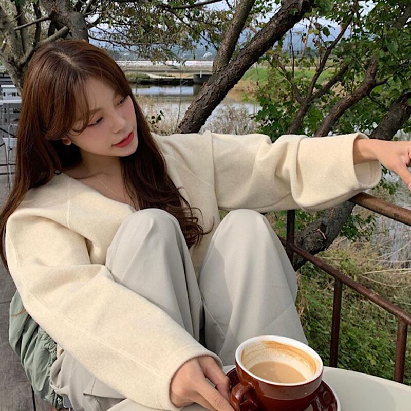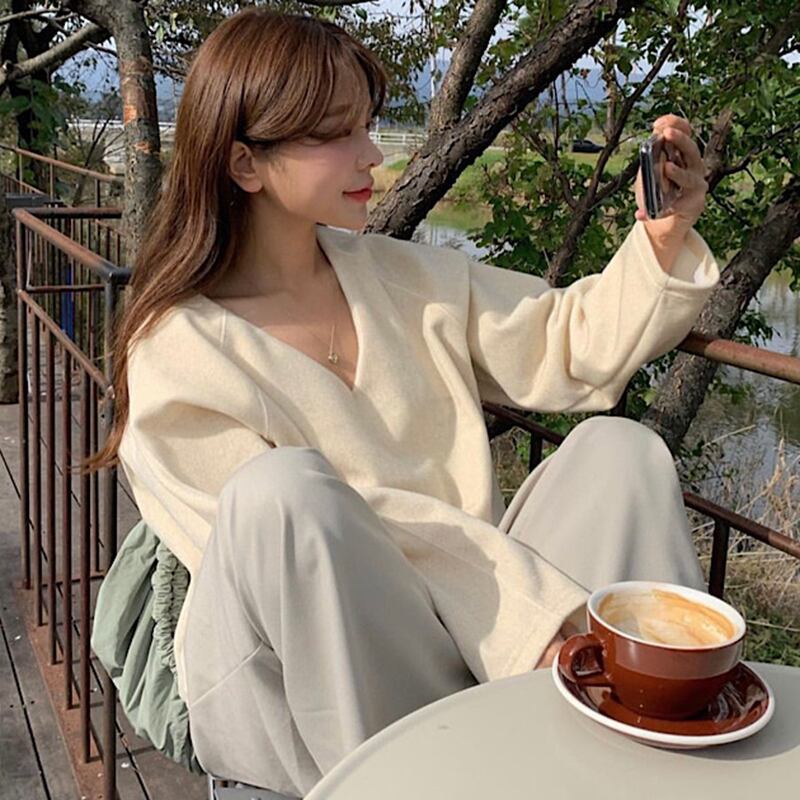 Vネック ウールセーター ルーズワイルドヘッジ シンプル 韓国 オルチャン a1440