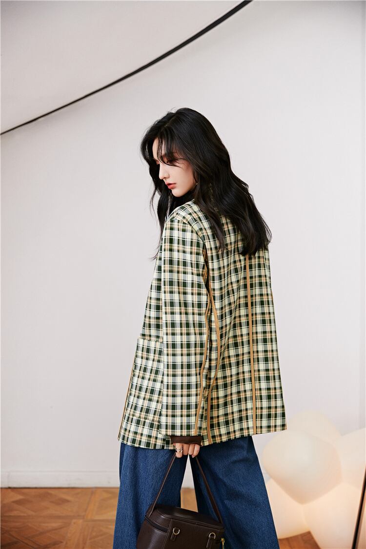 チェック柄ジャケット ダブルブレスト コート ジャケット レトロ 韓国 レディース a1285