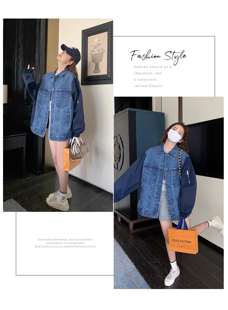 切り替えデニムジャケット ブルゾンジャケット ルーズデザイン コットンジャケット レトロ カジュアル カーディガン レディース 秋冬 a1448