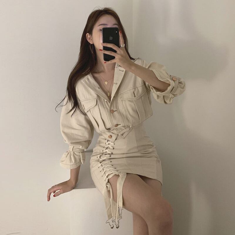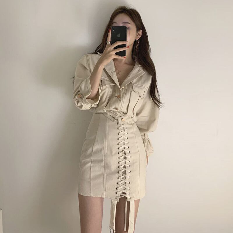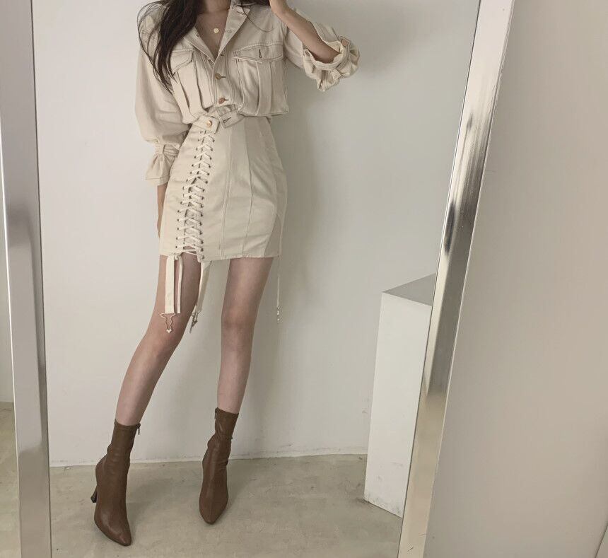 【セットアップ】ショートツーリングジャケット+ハイウエストストラップAラインスカート 韓国 トレンド a1480
