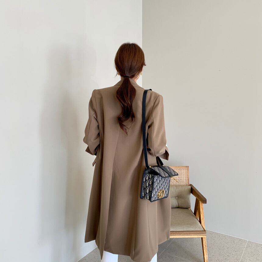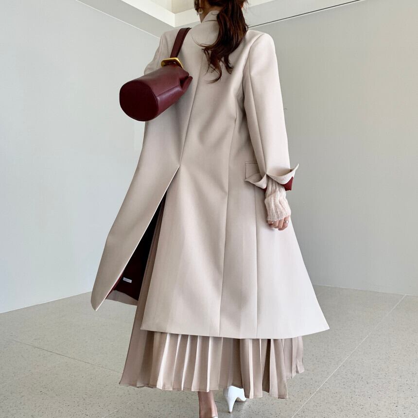 ミドル丈ジャケット スーツカラー シングルブレスト ルーズ バックスリット 韓国 英国 2カラー a1484