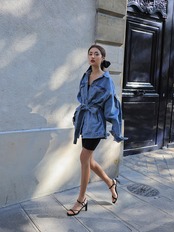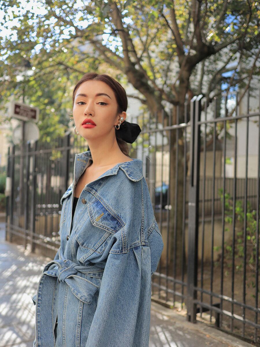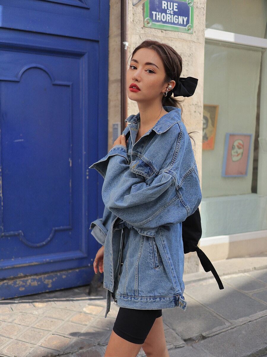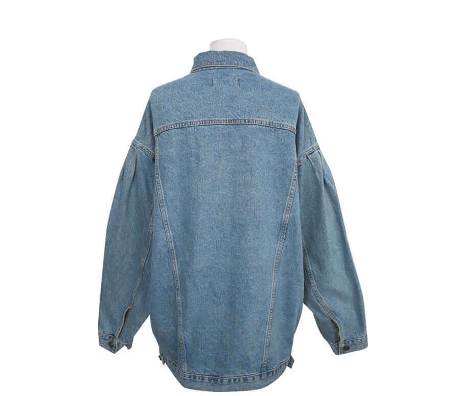 デニムジャケット ストラップウエスト ルーズ レトロ ワイルドラペル 韓国 シングルブレスト 2カラー a1485
