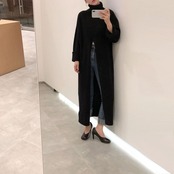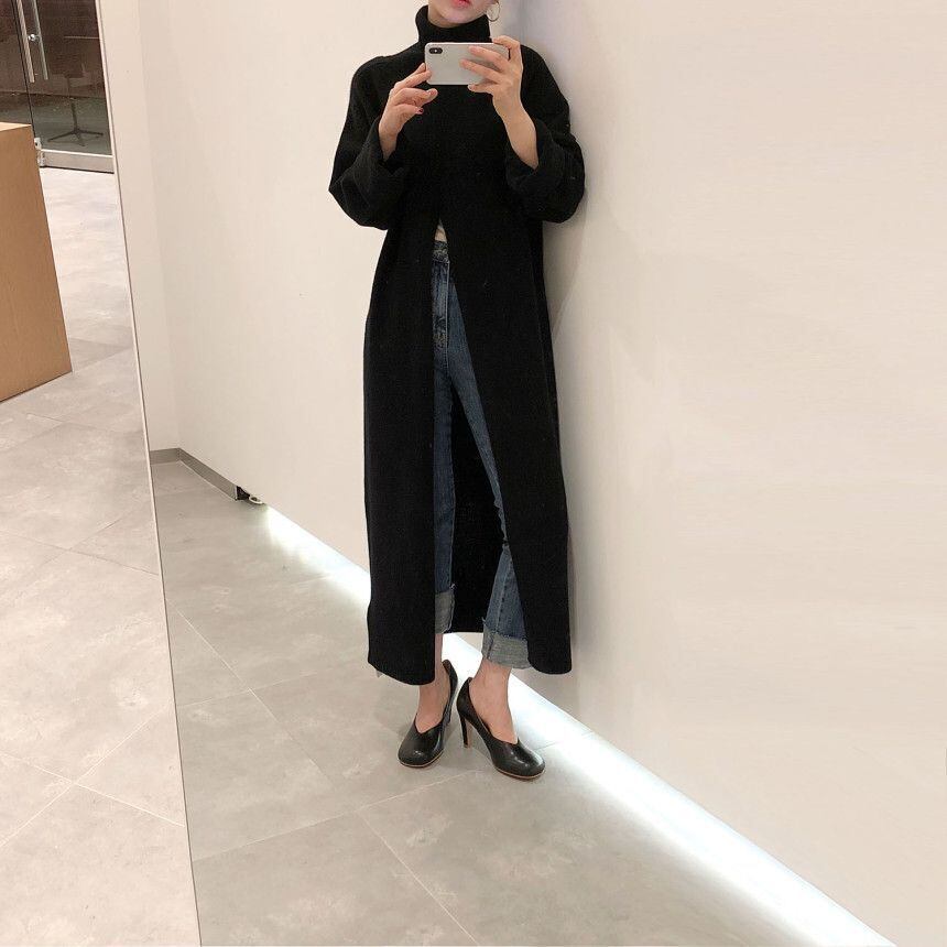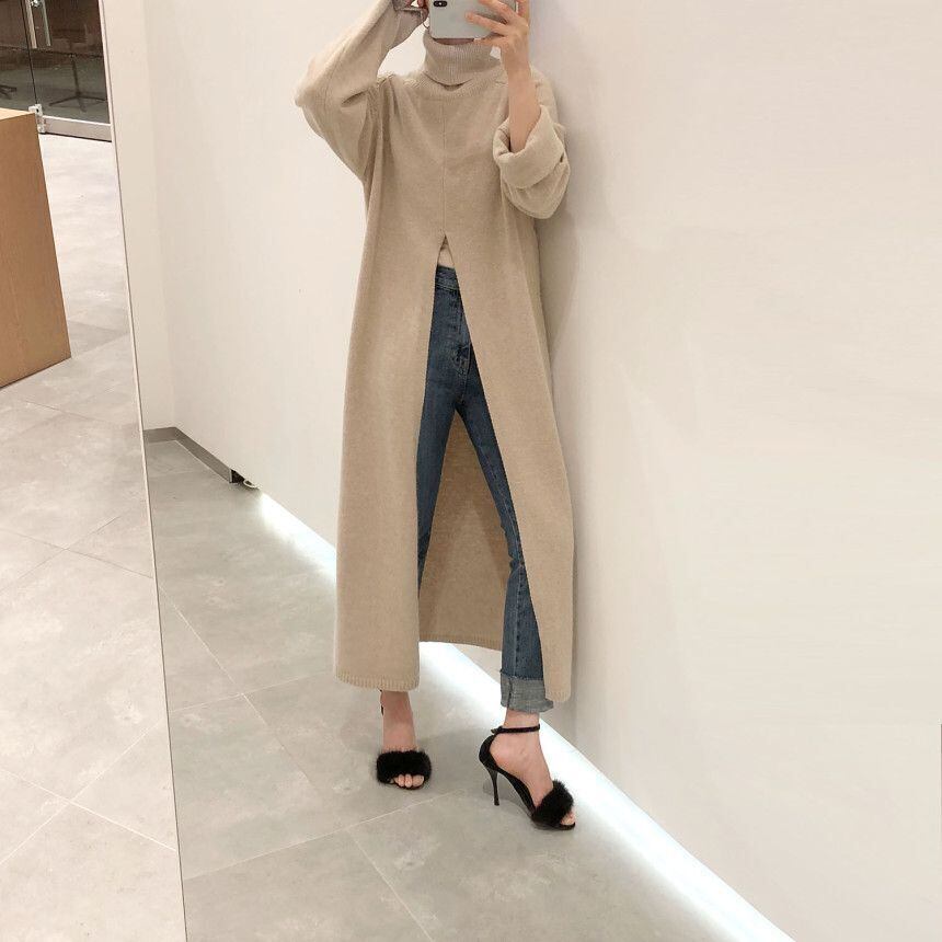 ハイネック オーバーニーロングセーター プルオーバー ルーズ カジュアル スプリット セーター 2カラー a1492
