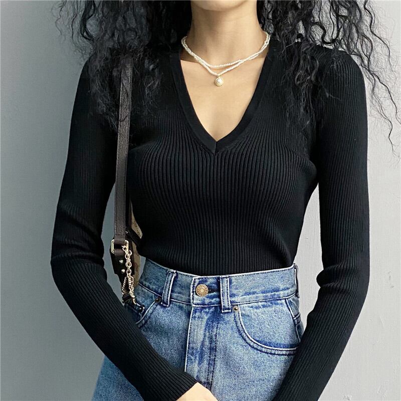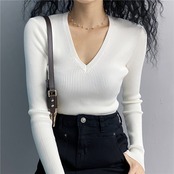 Vネック 長袖 トップス セクシー スリムスリミング ニット セーター 韓国 オルチャン 4カラー a1501