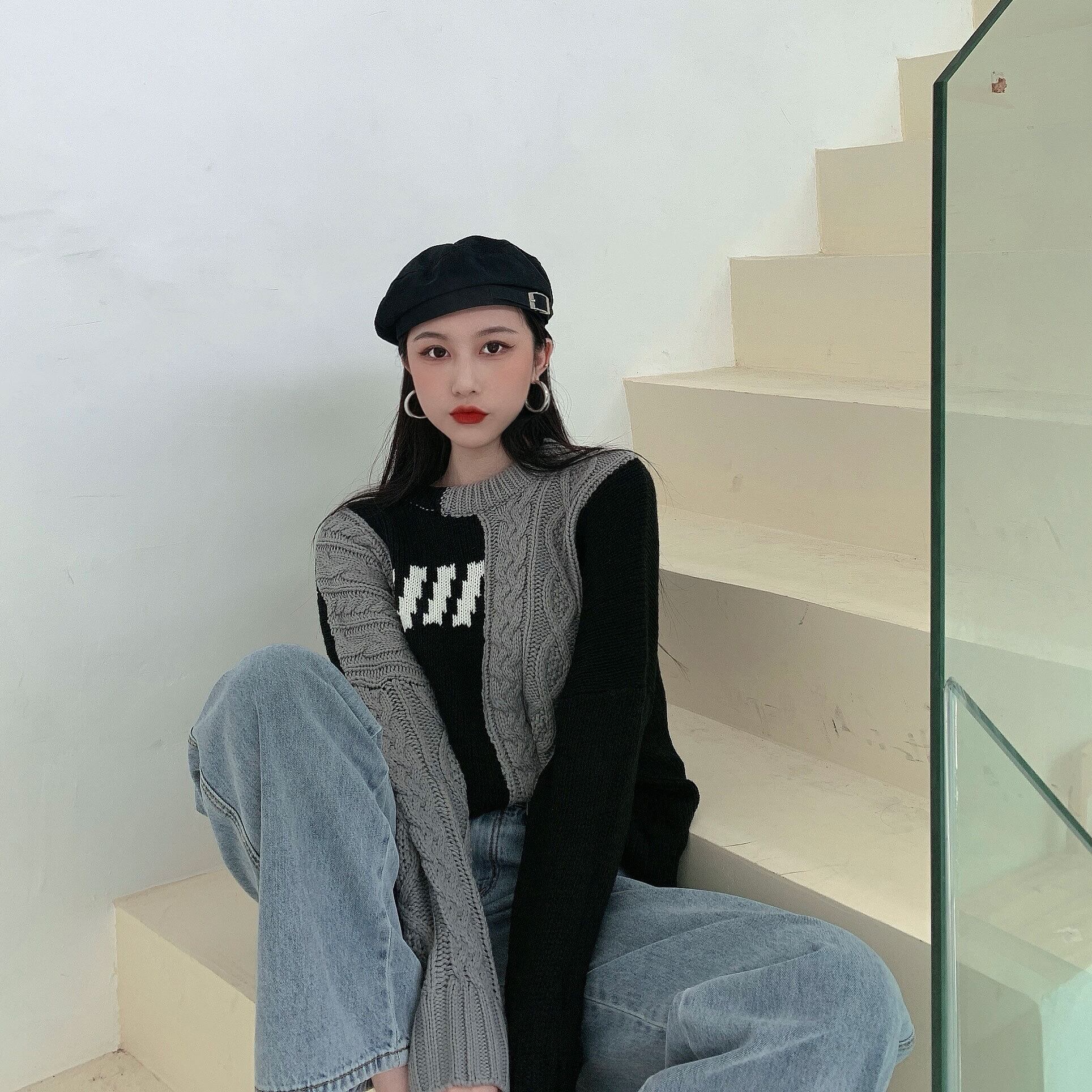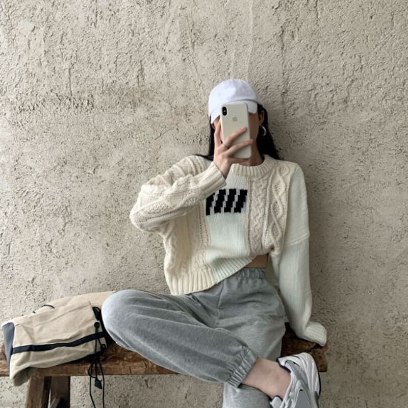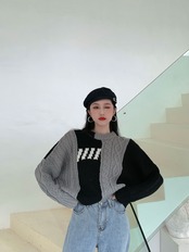 バイカラーデザインが可愛いリブニットセーター