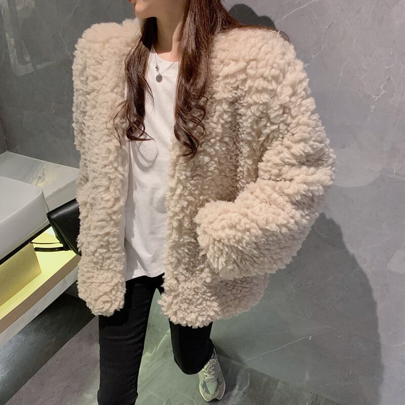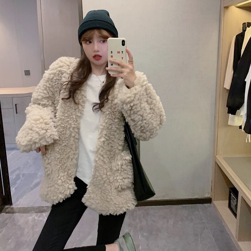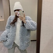 フリース カーディガン ラムウールコート ジャケットアウター 秋冬 韓国 2カラー a1575