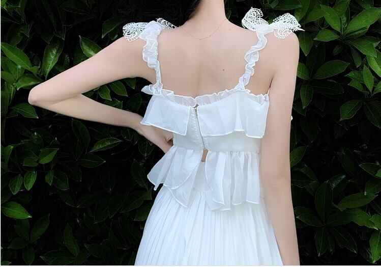 フリルキャミソール+フリルプリーツロングスカート