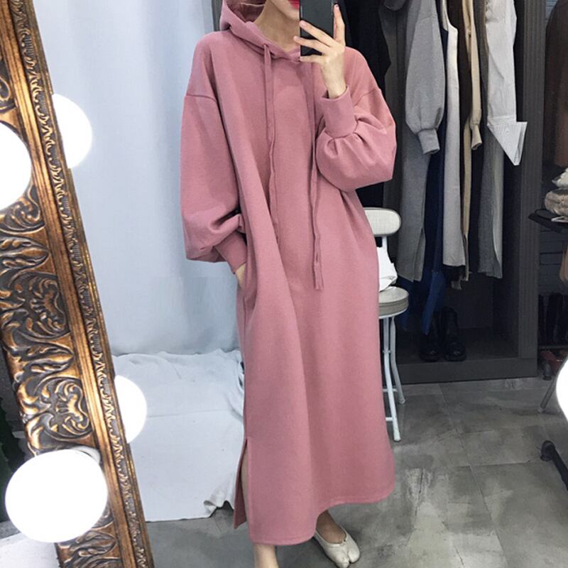 フード付き トレーナーワンピース ワイド ルーズ ワンピース ランタンスリーブ スプリット セーターワンピ 3カラー a1611