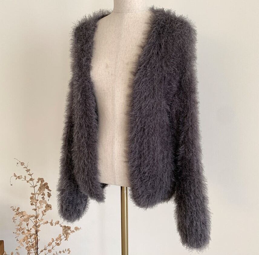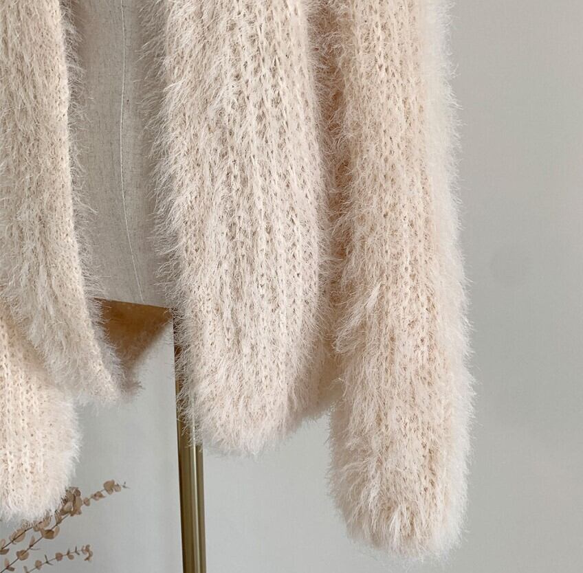 長袖カーディガン ヴィンテージルーズソリッドカラー セーターショート A917