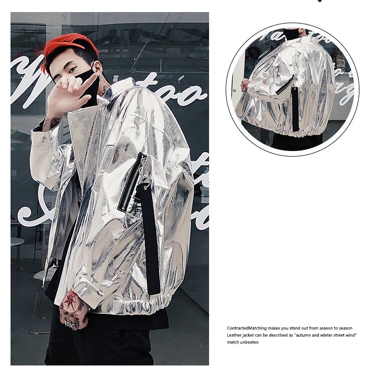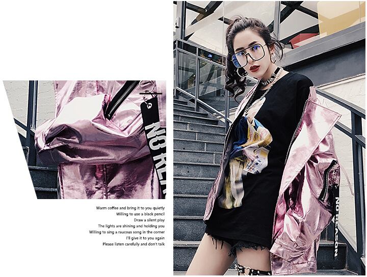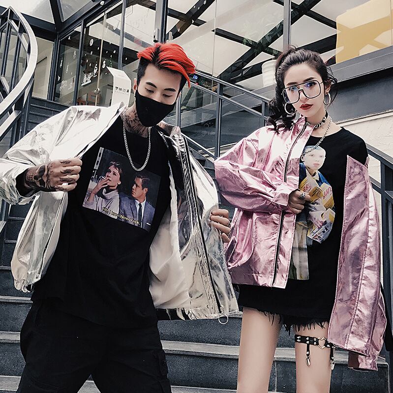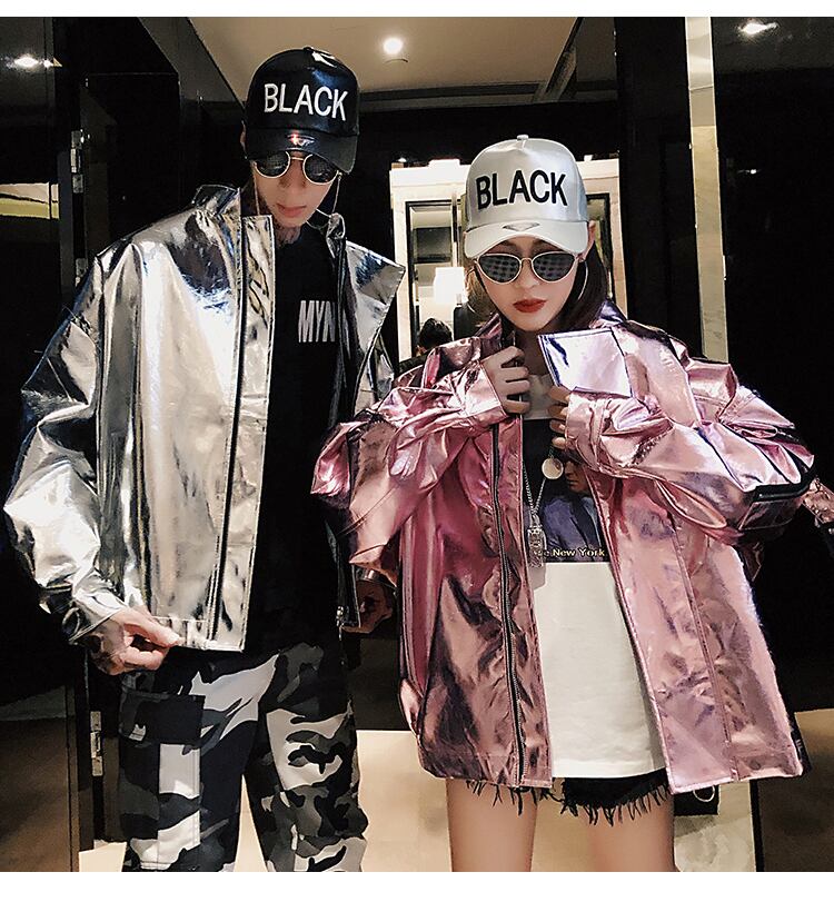 【2枚セット価格♡カップルコーデ】カップルジャケット シャイニーレザージャケット ジャンパー ブルゾン お揃い ストリート ジャケット アウター カップル シルバージャケット ピンクジャケット a1639