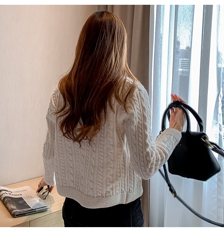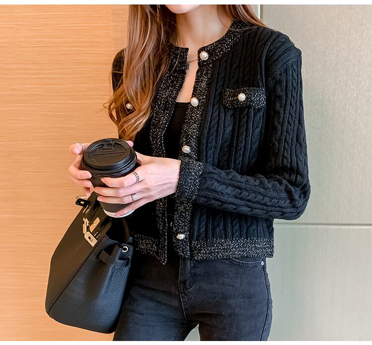 パール ニット カーディガン ルーズ パールバックル ラウンドネック リブニット ニットツイストジャケット 2カラー a1665