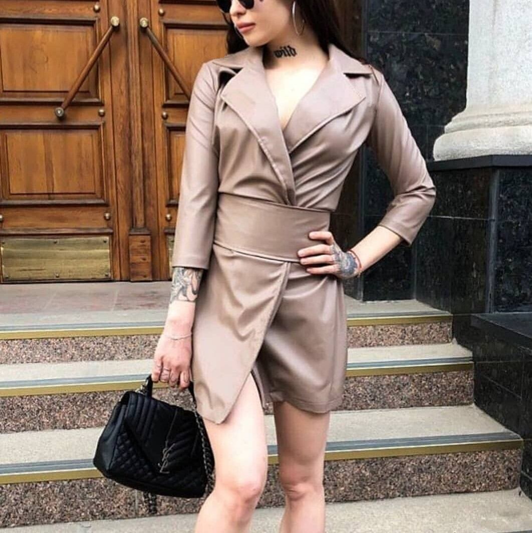 【ベルト付き】puレザースーツカラードレス ワンピース ミニワンピ セクシー タイトワンピ 秋冬 a1673