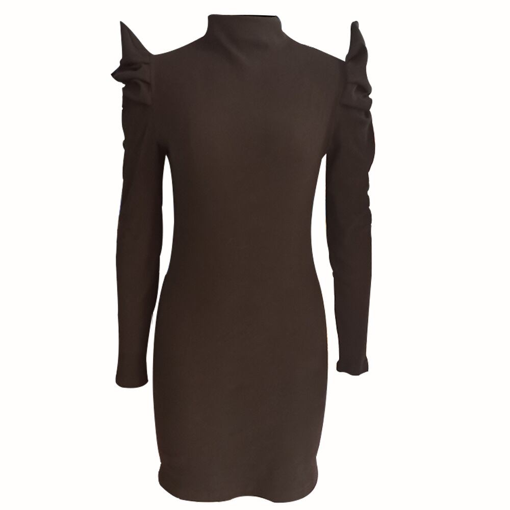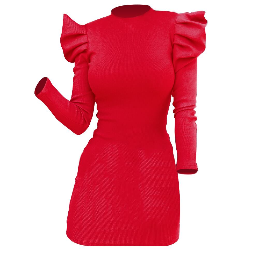 ラウンドネック パフスリーブ ワンピース ミニワンピ タイトドレス セクシー エレガント 4カラーa1675