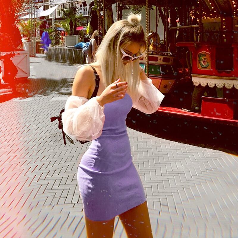 ふわふわのシフォンスリーブとミニ丈ドレスの組み合わせがセクシー♡